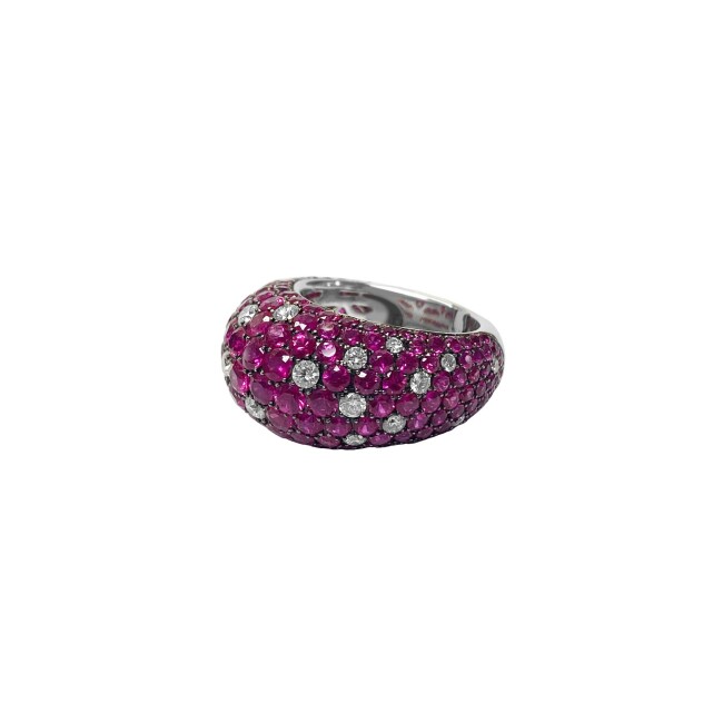 Bague Isabelle Barrier en or blanc, diamants et rubis, taille 53